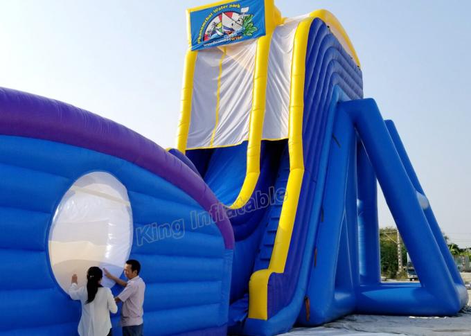 Blue, Yellow Water Slide Games Commercial 12×4m for commerical use