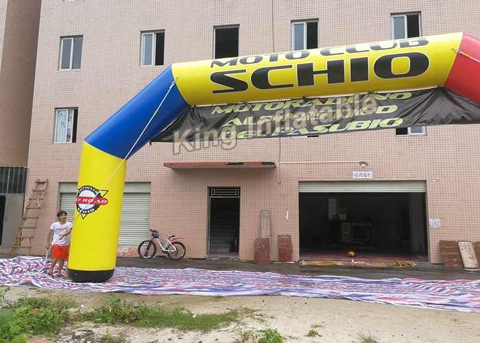 The Inflatable Arch is an inflatable structure that is inflated by an external cold air inflation fan connected to the arch via a tube.Inflatable arch, when inflated and often used as entrances to events or as ad space and mile markers for races. Digital print log art and temporary banner areas.