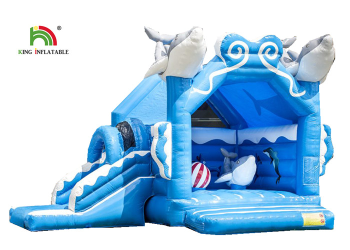 Customize Business 1.6ft Blue Dolphin Inflatable Jumping Castle For Kids Double - Triple Stitch